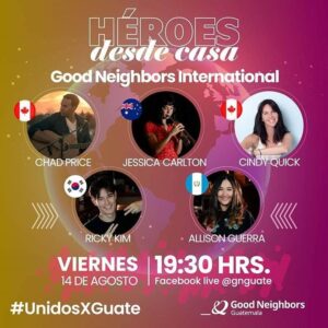 Chad Price, the fantastic Cindy Quick and many artists from around the world! – August 14 at 9:30 PM EST via Facebook Live (via Good Neighbors Guatemala – @ gnguate)