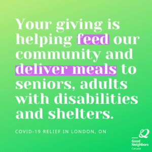 Read MoreWhen quarantine started here in London, Ontario, our first thought was providing nutrition to the vulnerable population who wouldn’t have had the means to stock up on food. Your giving allowed us to donate $15,000 to help feed our community. Thank you!
